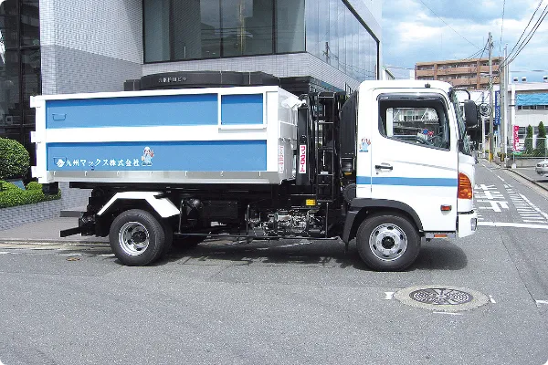 搬出時の交通災害や騒音等で住民の方へ迷惑をかけないために現場を事前調査します。そして廃棄物の内容・種類・数量に応じて、各種の車輌が出動します。飛散や流出しないための容器やコンテナ等、場所や地形に応じた機械付車輌も用意しています。