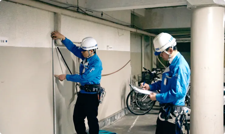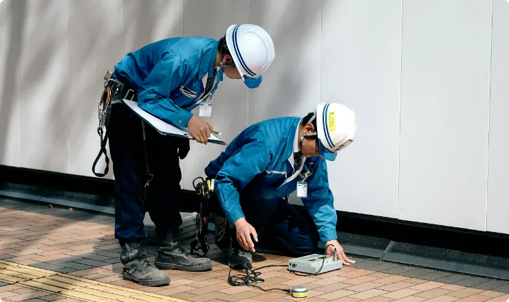 解体する建物の構造や内部の状況、有害物の有無、敷地に関することなどについて綿密な調査を行い、施工計画に反映させます。